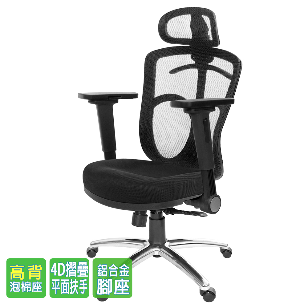 本訂購頁規格:4D平面摺疊扶手、鋁合金腳座、PU防刮輪